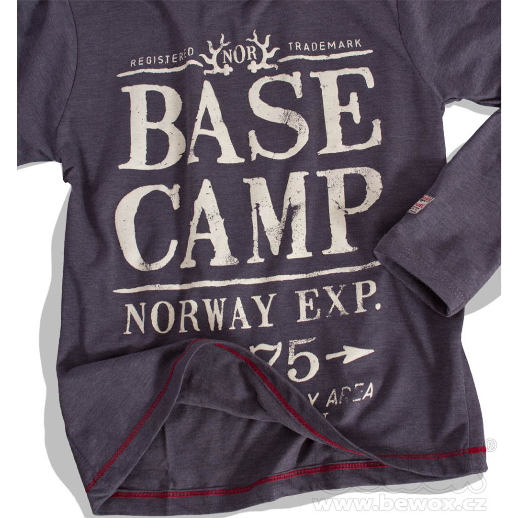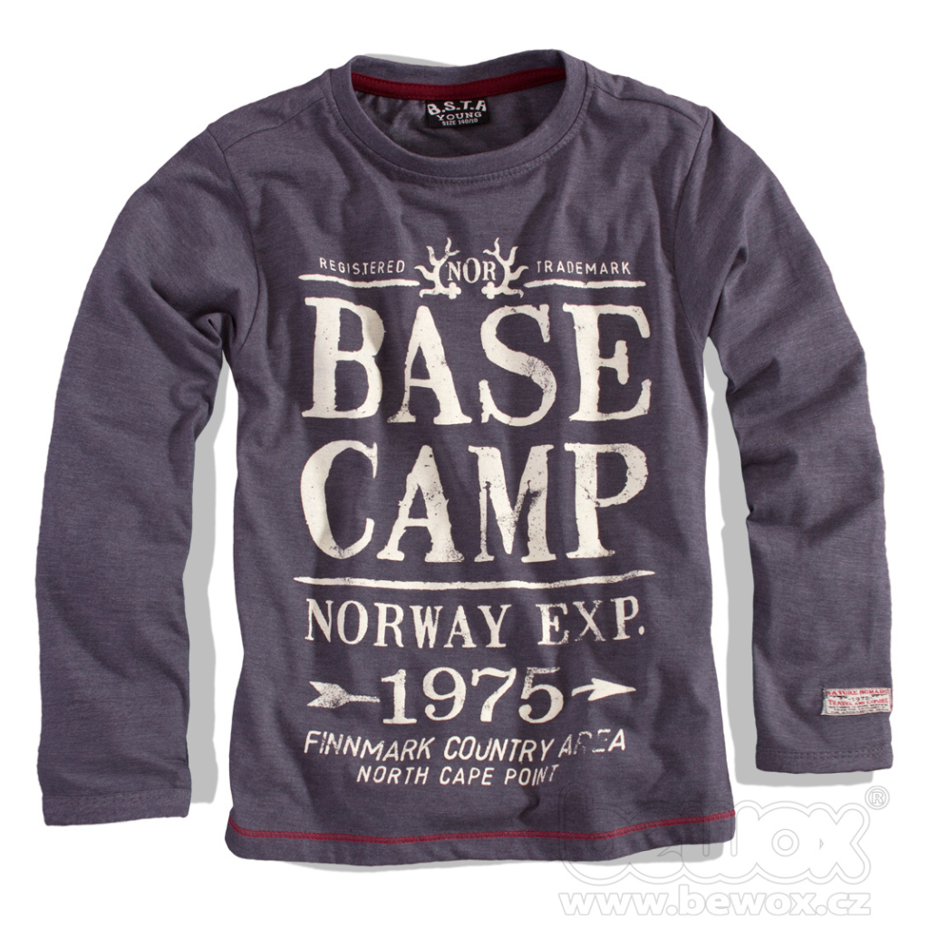 Chlapčenské tričko s dlhým rukávom, s potlačou. Na spodnom okraji farebné prešitie. Na rukáve malá nášivka.