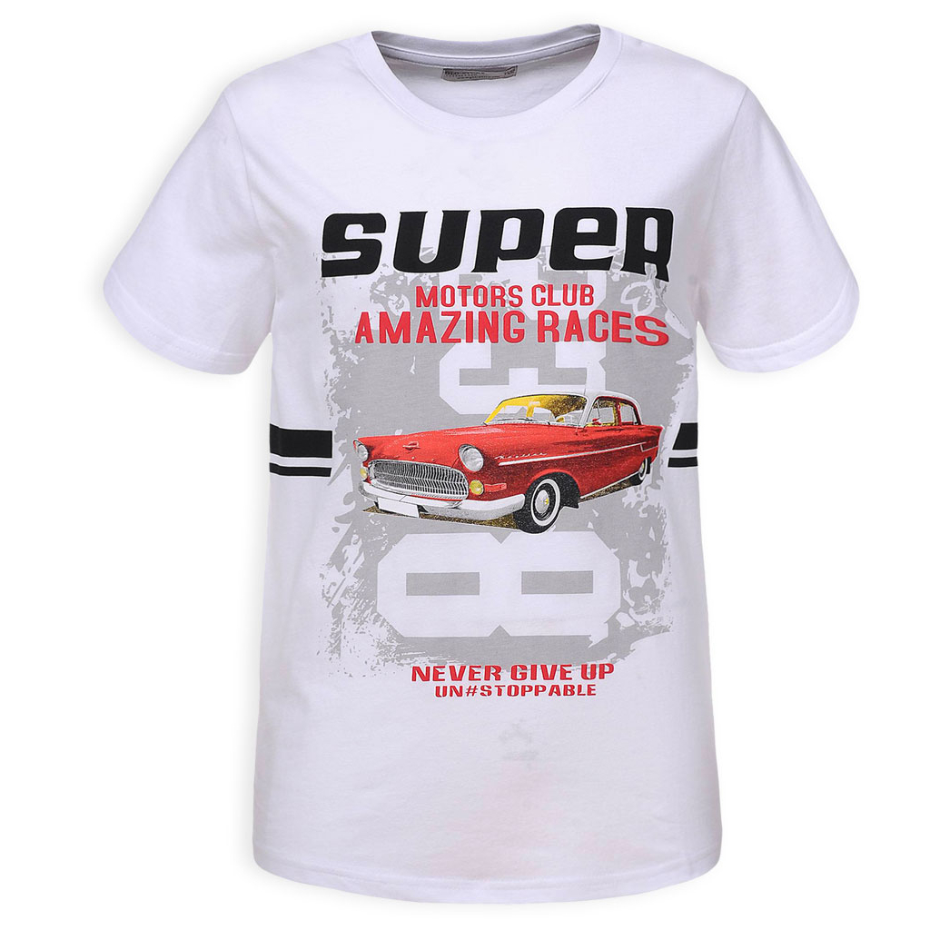 Tričko s krátkym rukávom pre chlapcov. S potlačou auta a nápisom.