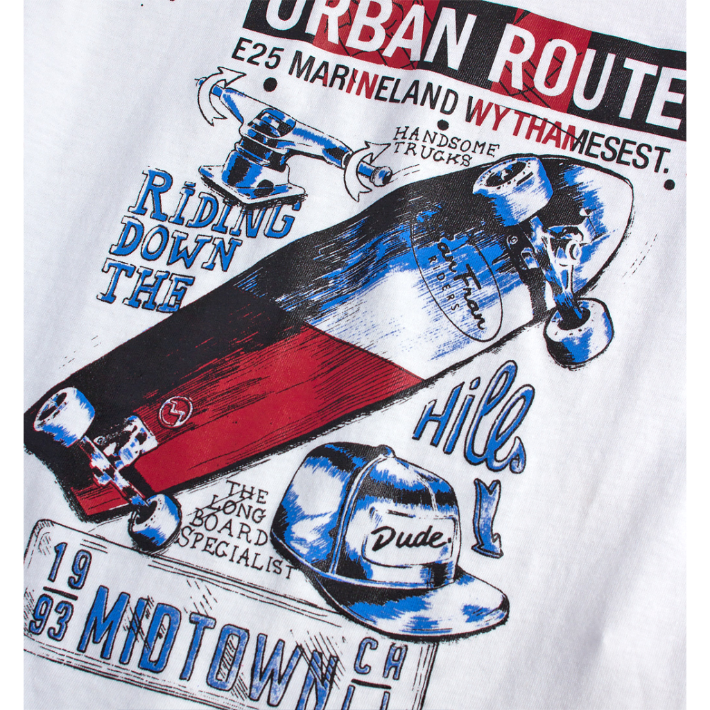 Skvelé tričko s krátkym rukávom, skateboardový motív potlače. Mäkký a pružný bavlnený úplet.