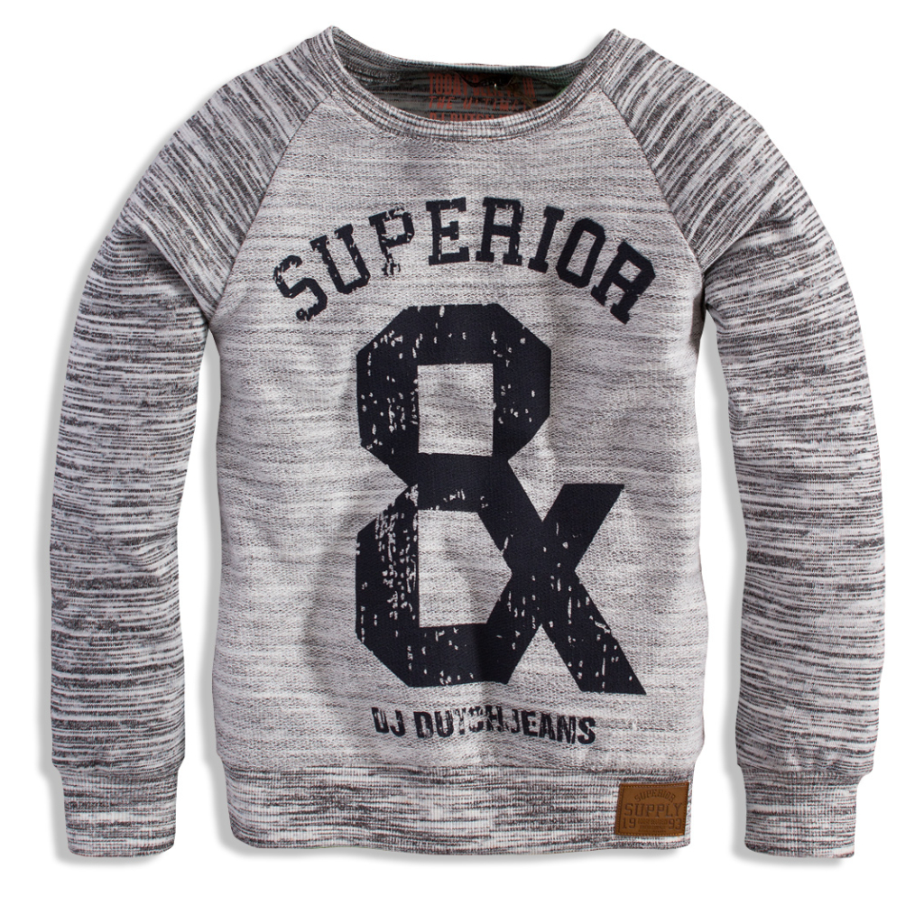Detská mikina cez hlavu, bez kapucne. Vpredu potlač, dole malá nášivka. Pružné lemy. Príjemný úplet.