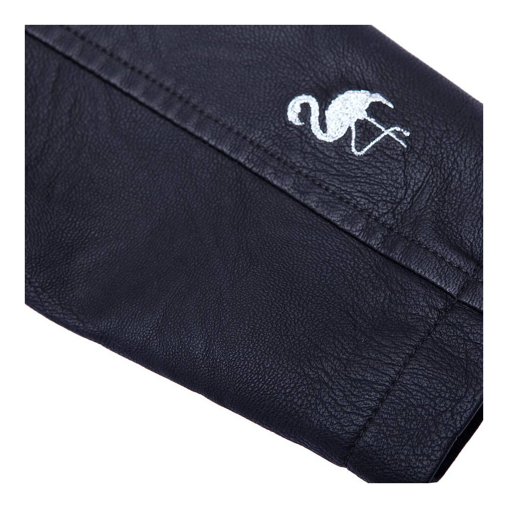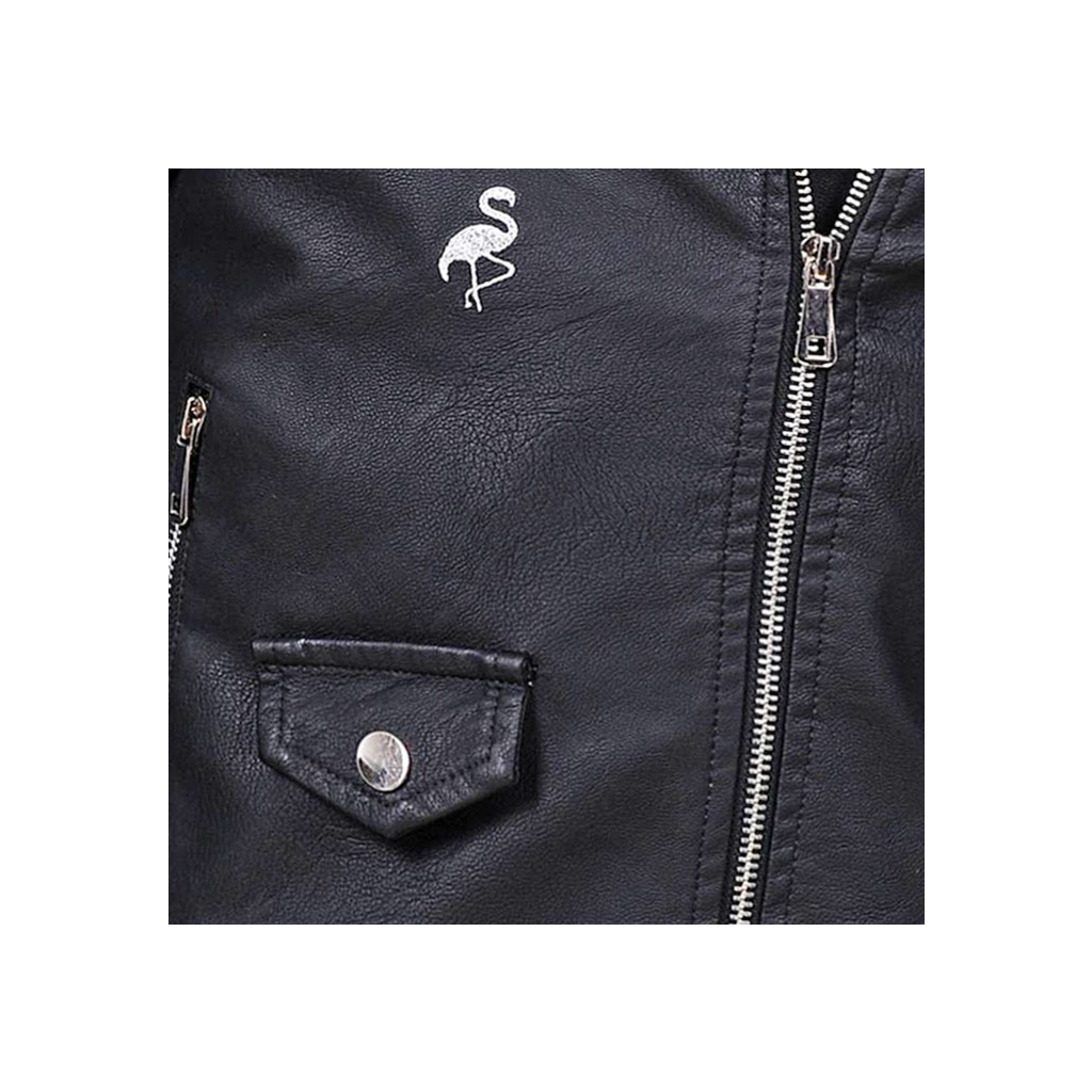 Trendy koženková bunda - krivák s drobnými plameniakmi vyšitými striebornou nitkou.