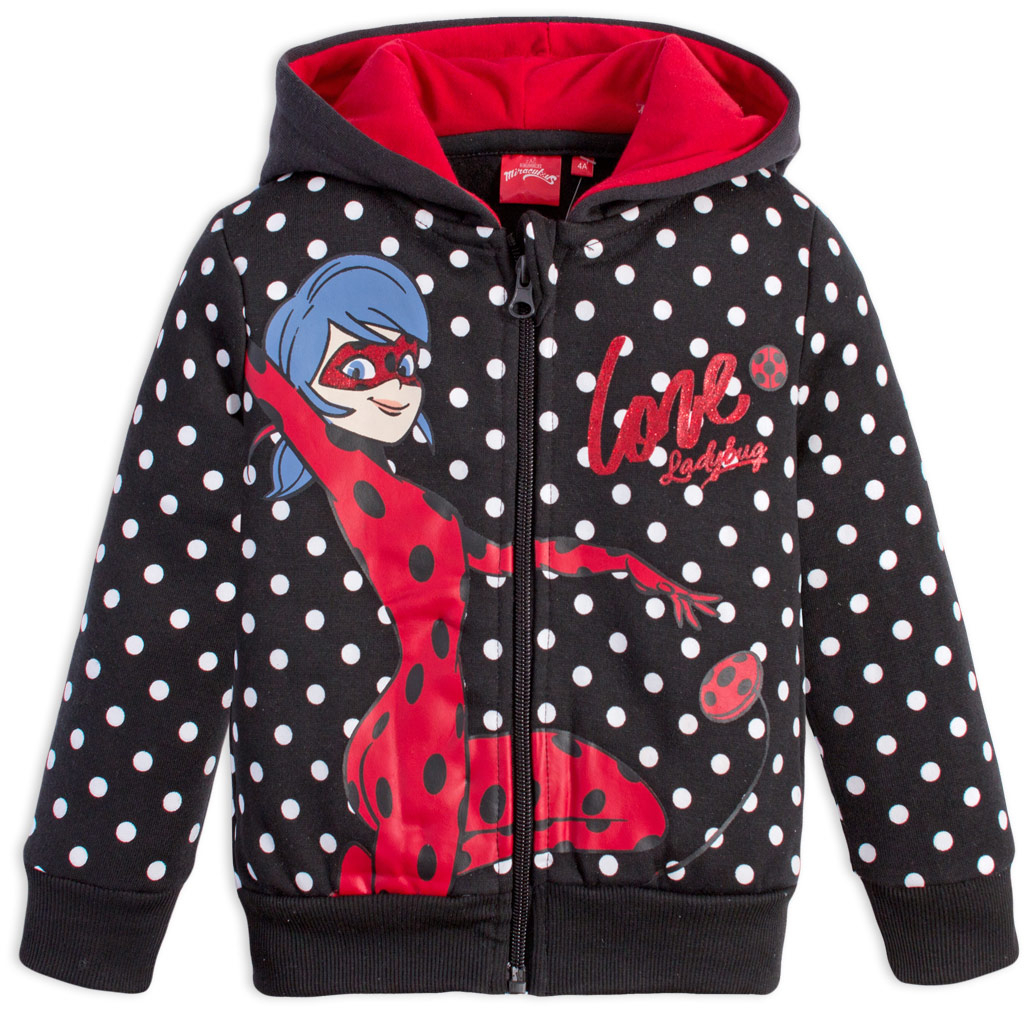 Dievčenská mikina s Kúzelnou lienkou (Kouzelnou beruškou). Hrubšia teplákovina s hrejivým chĺpkom na rubovej strane. Po bokoch všité vrecká.