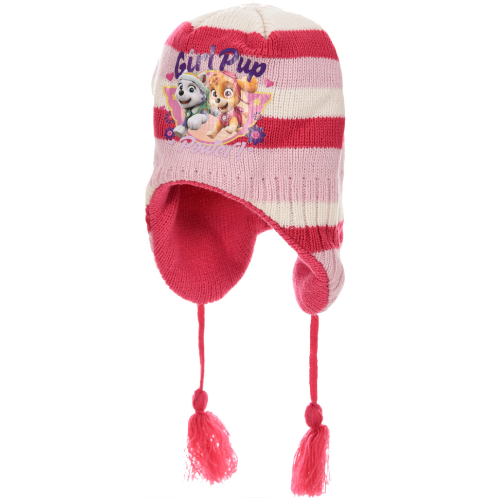Dievčenská čiapka so strapcami, s obrázkom Labkovej patroly. Dvojitá pletenina.