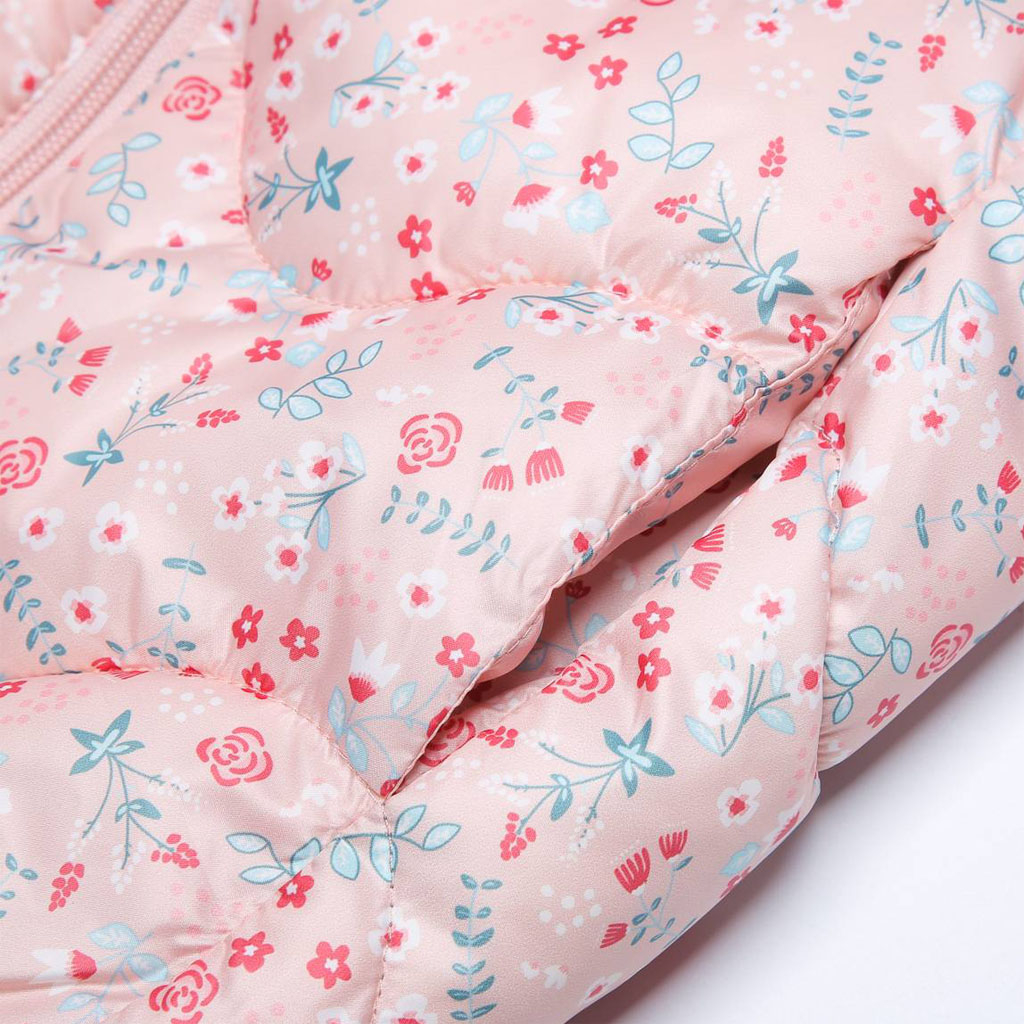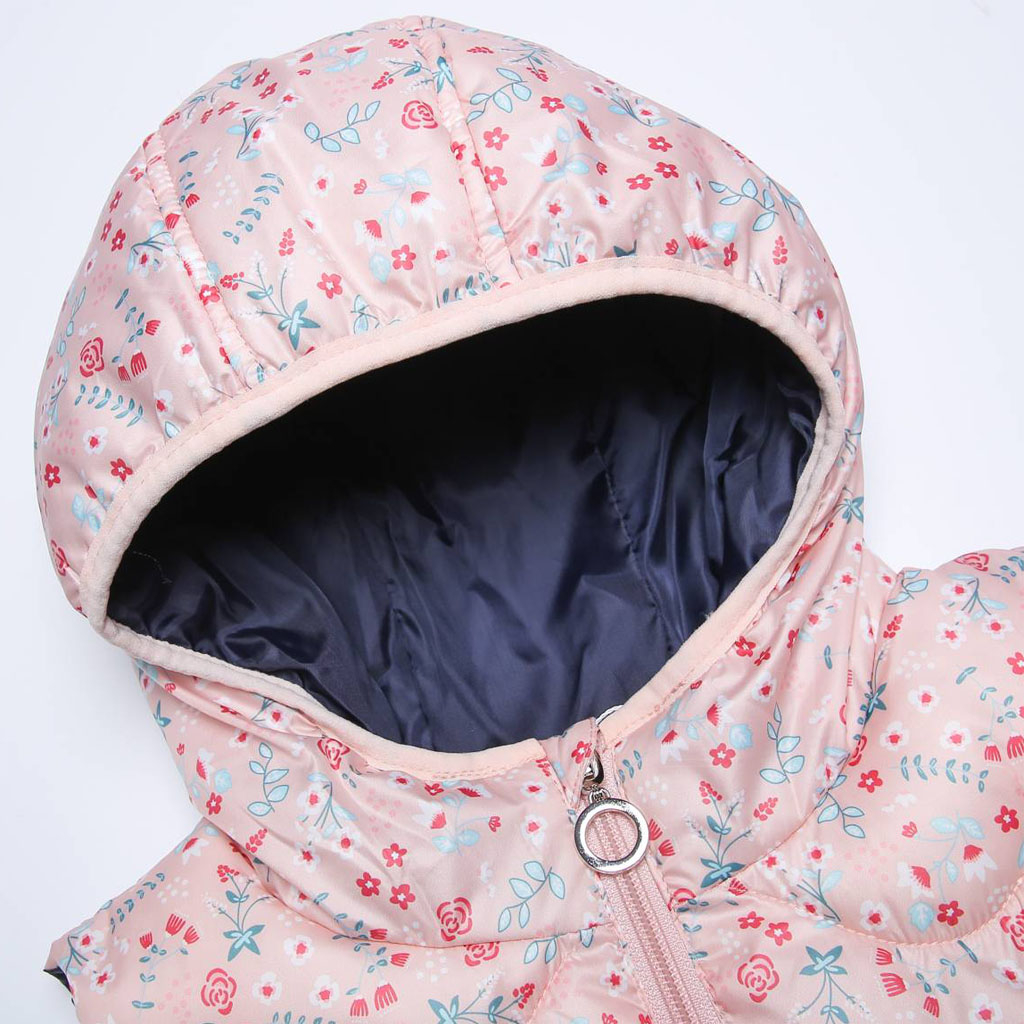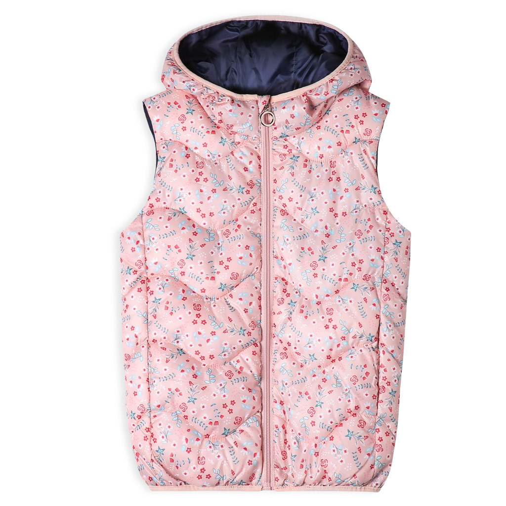Krásna prešívaná vesta pre dievčatká. S kapucňou, stojačikom u krku. Praktické hlboké vrecká. Šuštiaková podšívka.