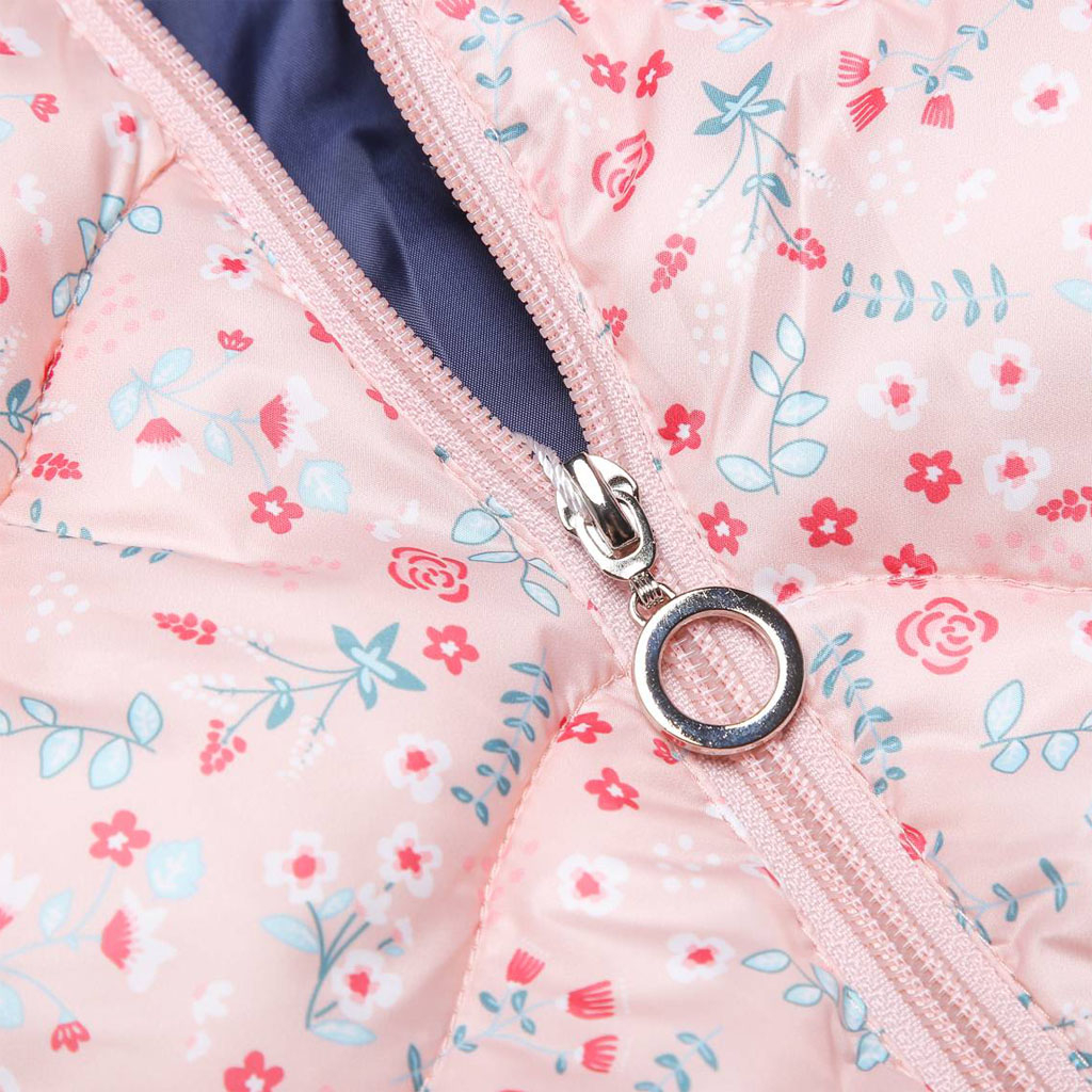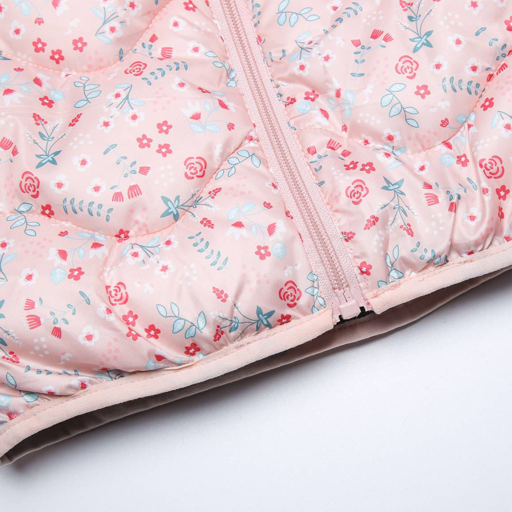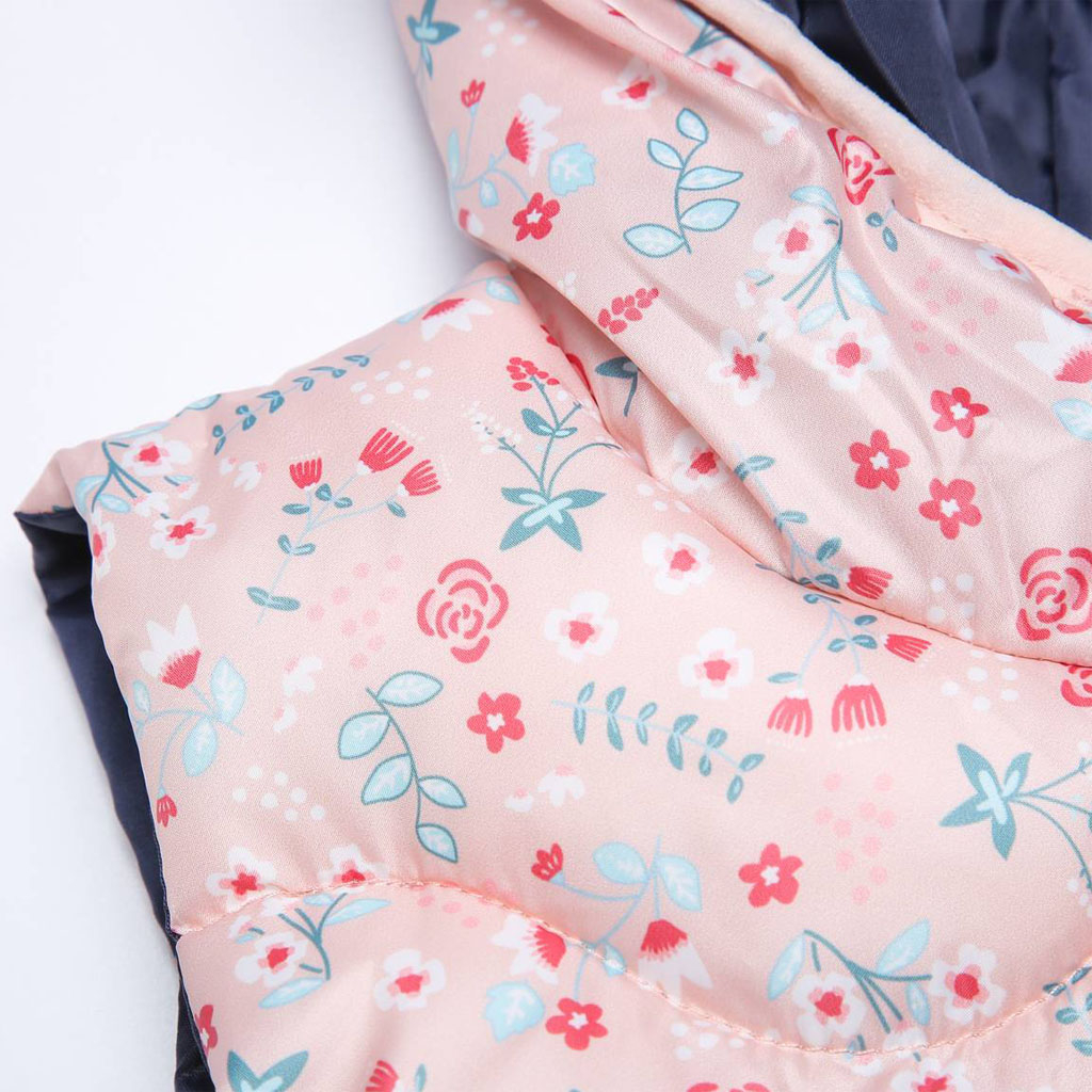 Krásna prešívaná vesta pre dievčatká. S kapucňou, stojačikom u krku. Praktické hlboké vrecká. Šuštiaková podšívka.