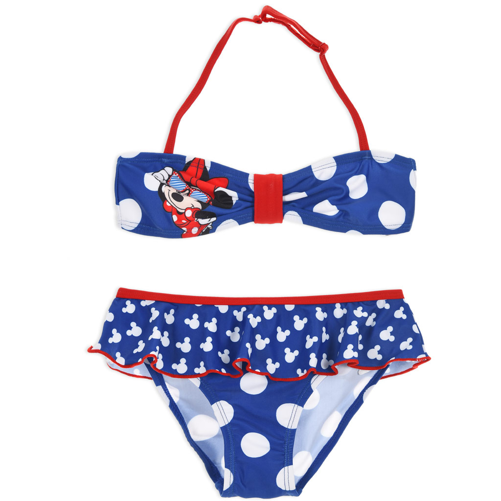 Dvojdielne plavky pre dievčatká, s obrázkom Minnie. Vrchný diel bez zapínania, vzadu na gumu. Ramienko za krk má nastaviteľnú dĺžku.