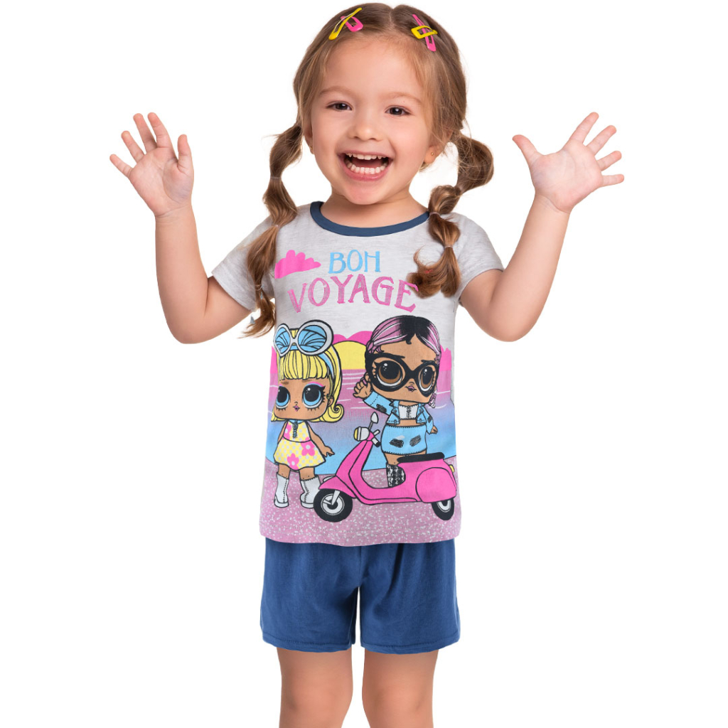 Dievčenské letné pyžamo s bábikami L.O.L.SURPRISE. Tričko s krátkym rukávom, s veľkým obrázkom, jednofarebné šortky. Vyrobené z bavlneného úpletu.