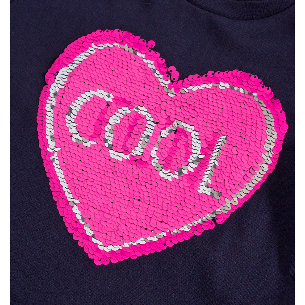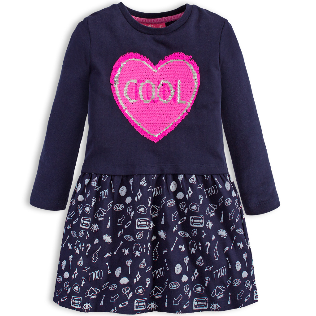 Dievčenské šaty s dlhým rukávom. Aplikácia z preklápacích flitrov. Spodná časť s potlačou. Príjemný bavlnený úplet.Dodatočné parametre