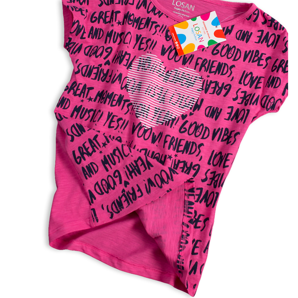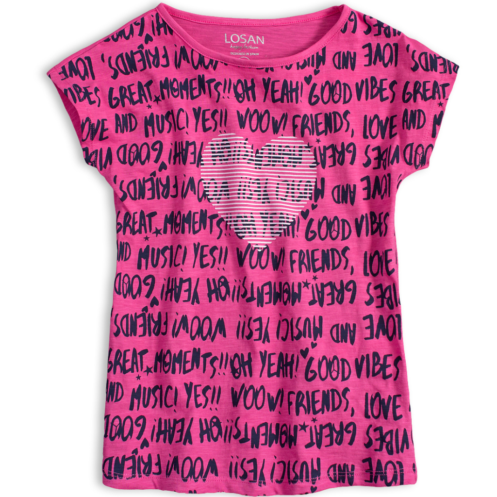 Dievčenské tričko s krátkym rukávom, španielska značka LOSAN. Vpredu potlač, zadný diel jednofarebný. Príjemný bavlnený úplet so zosilnenými niťami (slub).