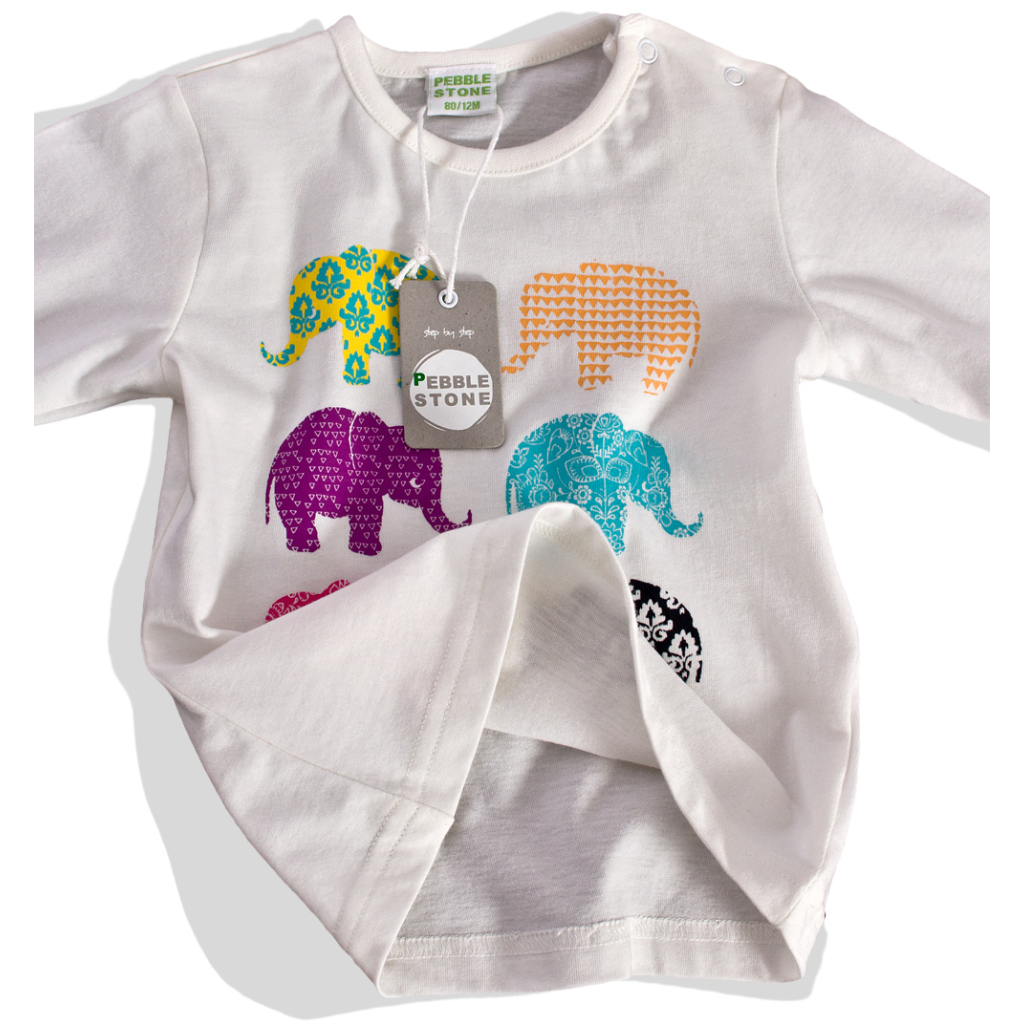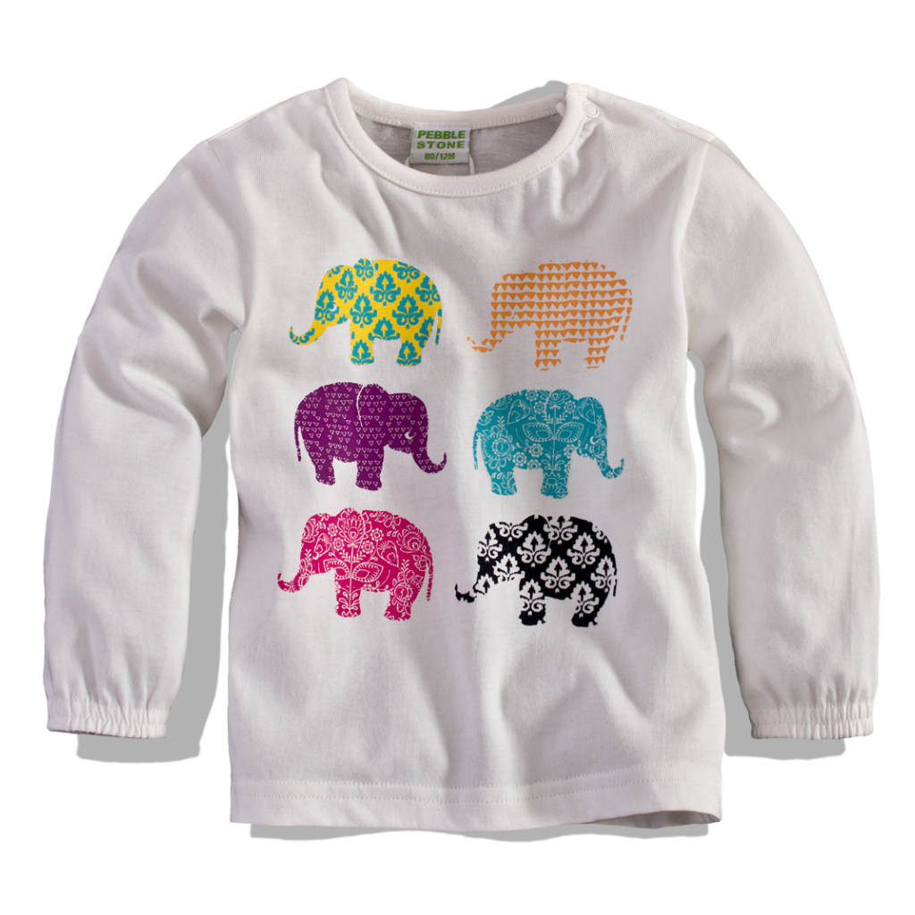 Dievčenské tričko s dlhým rukávom PEBBLESTONE slony biele