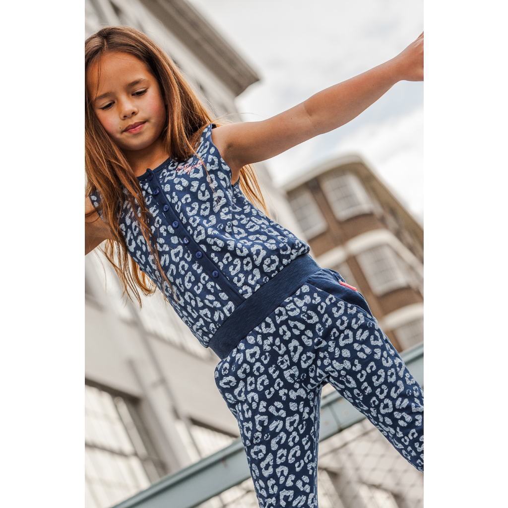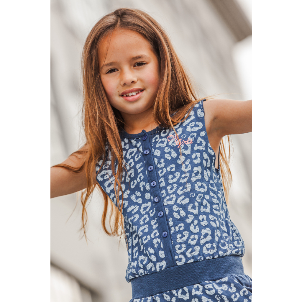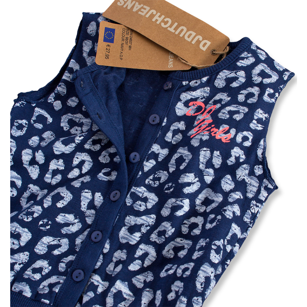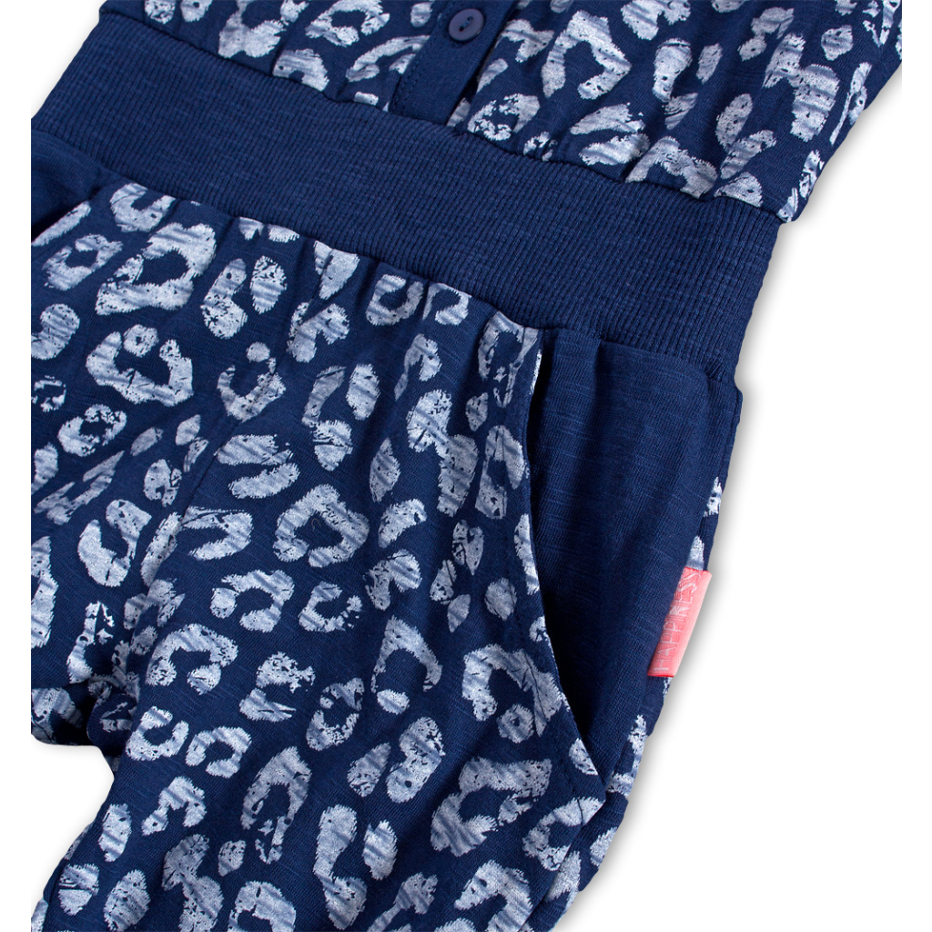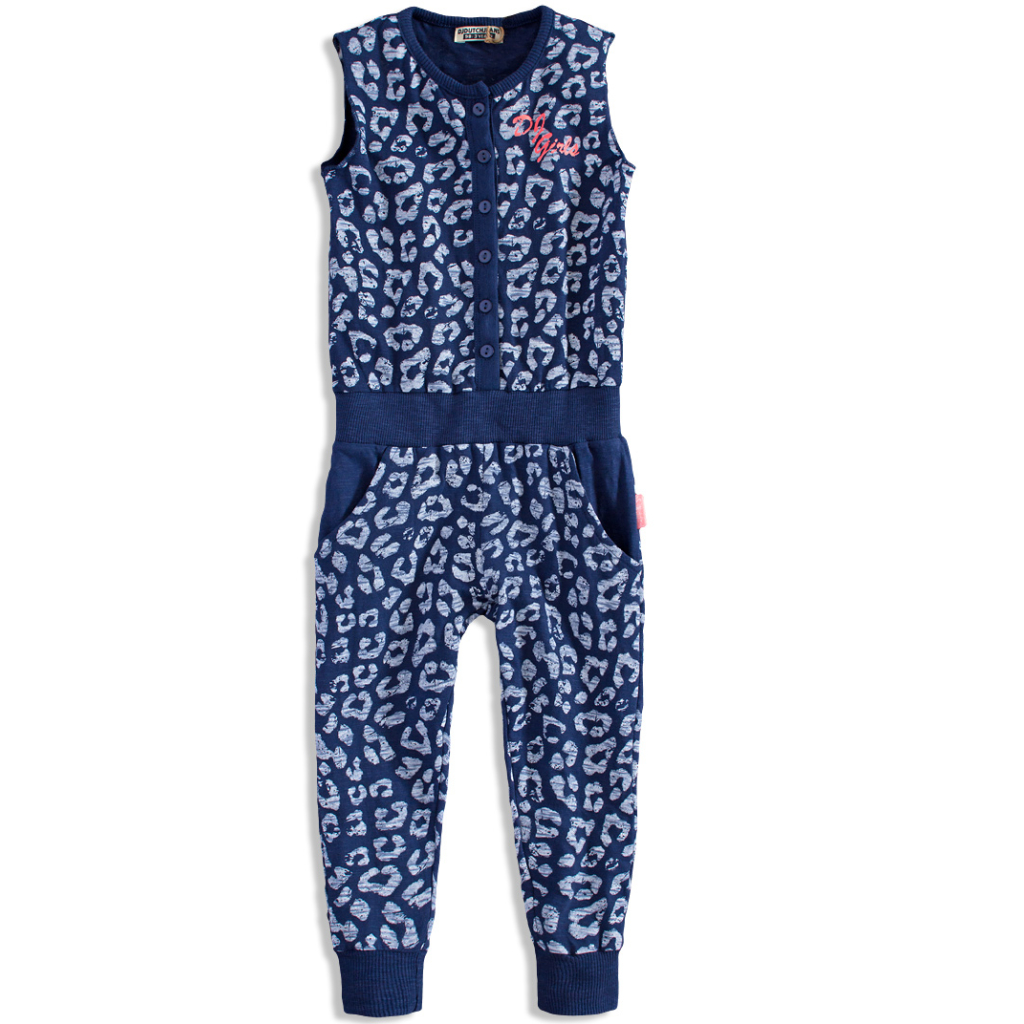 Dievčenský letný overal bez rukávov, z príjemného bavlneného úpletu s potlačou. V páse guma. Funkčné vrecká.