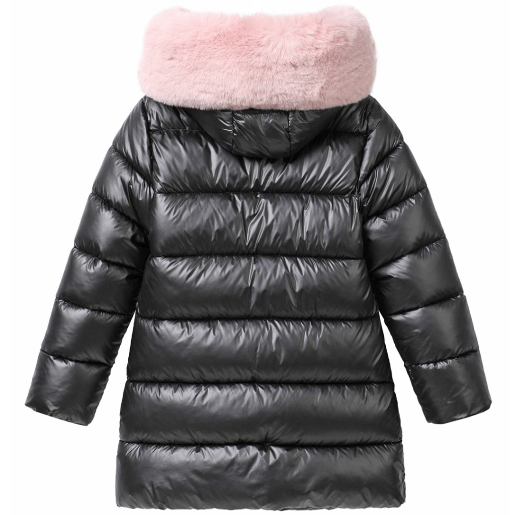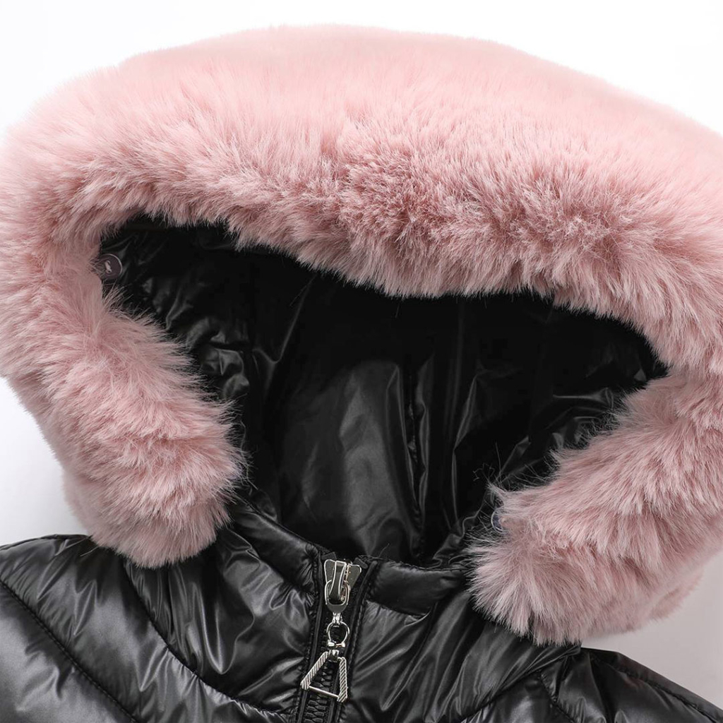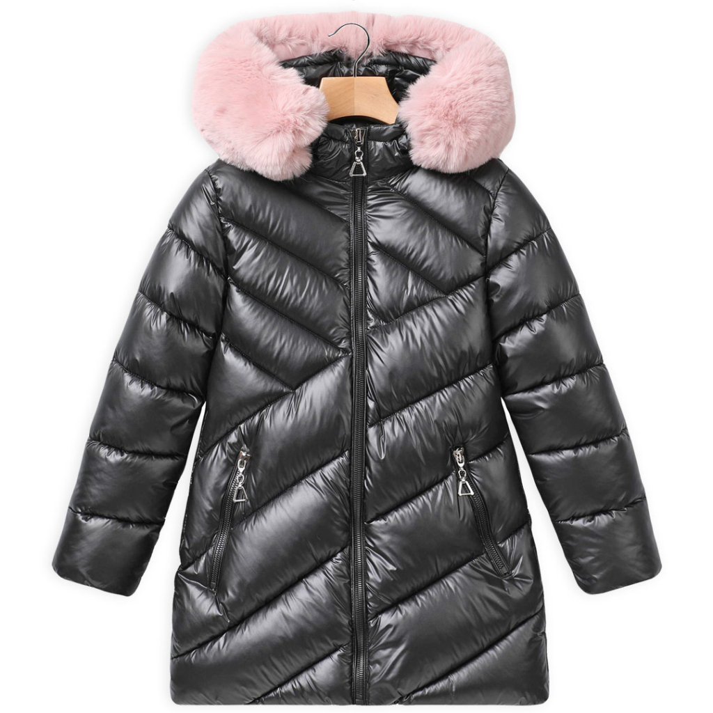 Prešívaný dievčenský zimný kabát. Kapucňa s odopínacou kožušinkou. Praktické hlboké vrecká so zapínaním na zips. Rukávy majú vnútorný pružný lem. Po tele podšívka z kožušinky, v rukávoch šuštiak pre ľahšie obliekanie. Hrejivá výplň.