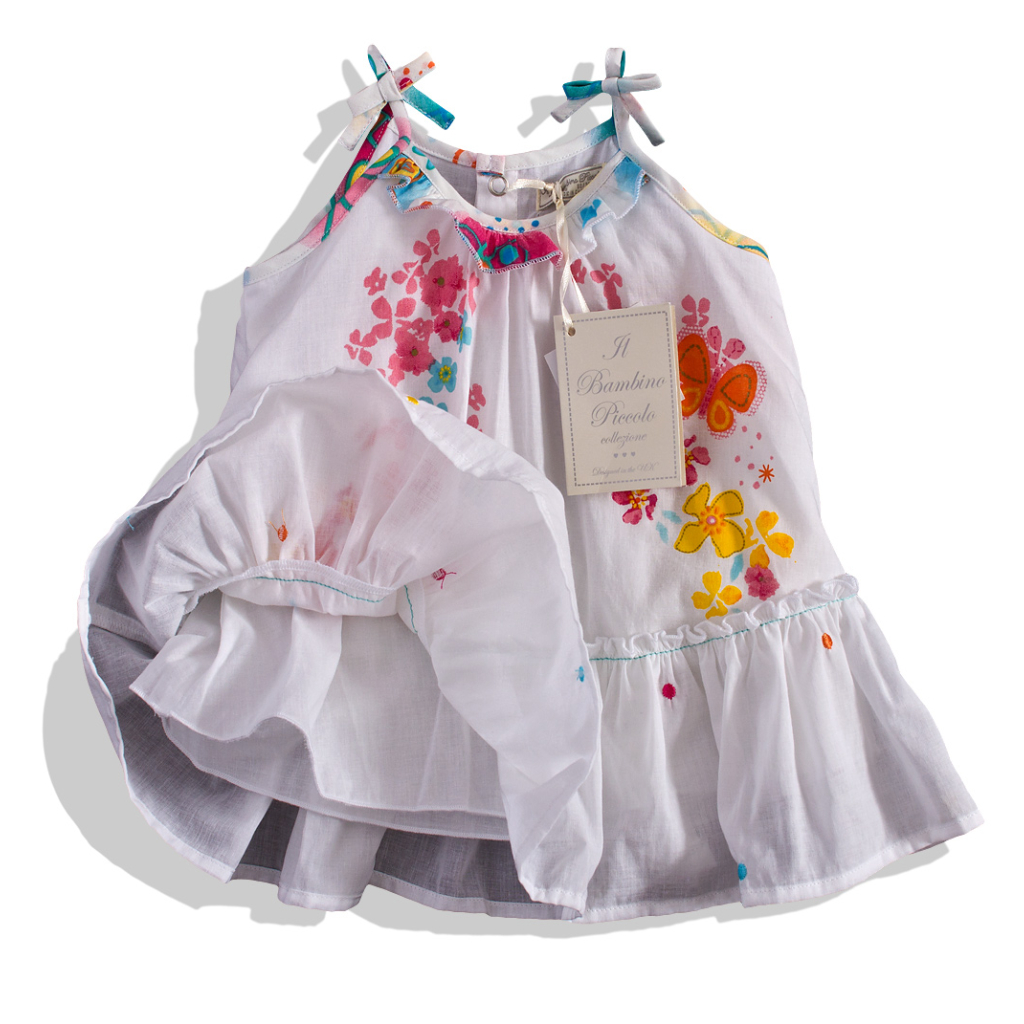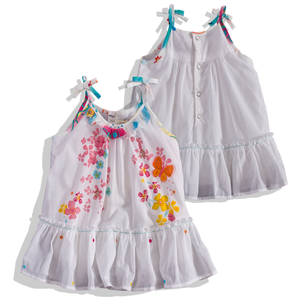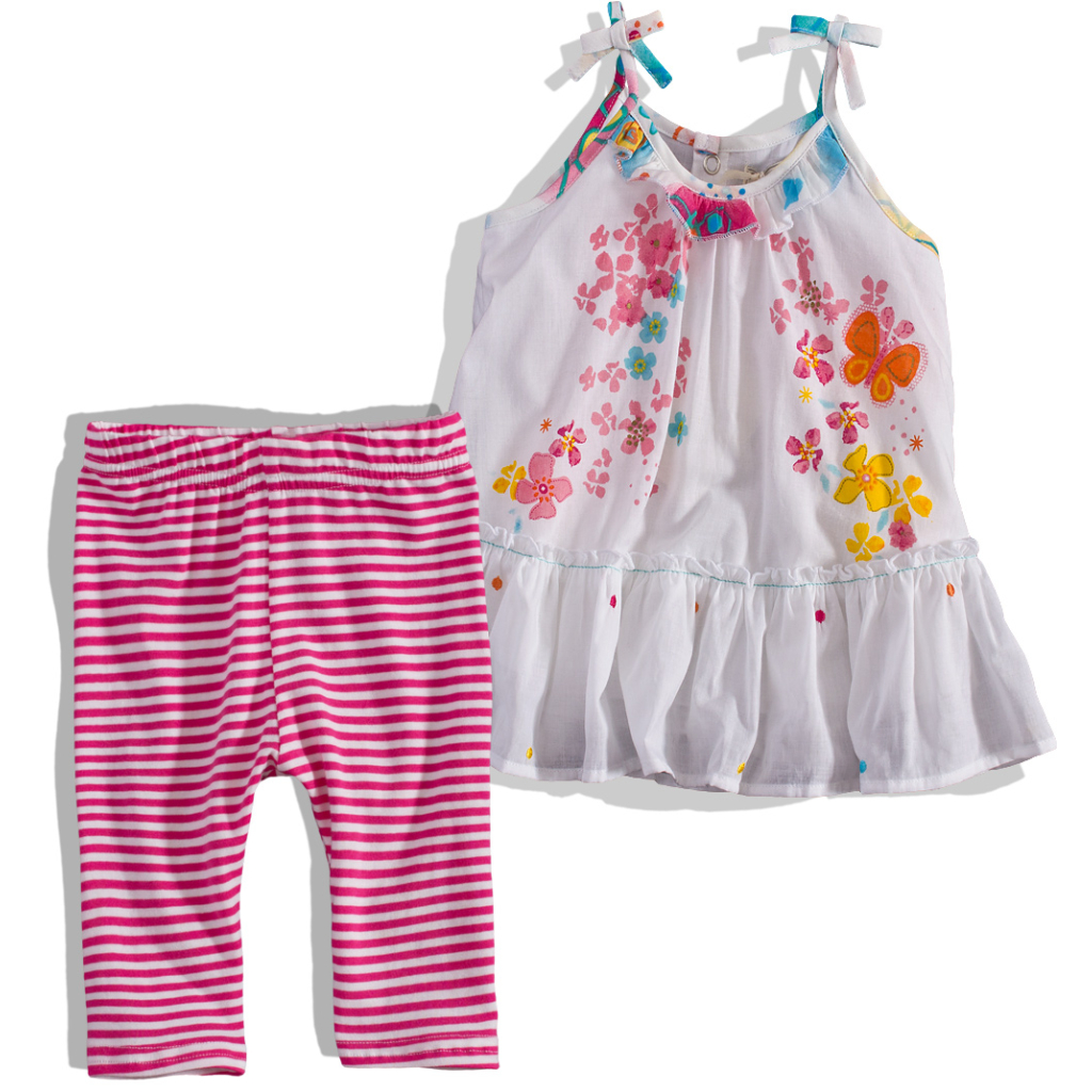 Dojčenská súprava, plátenný top s potlačou, volánikom a spodničkou z jemného bavlneného plátna. Prúžkované 3/4 legíny.