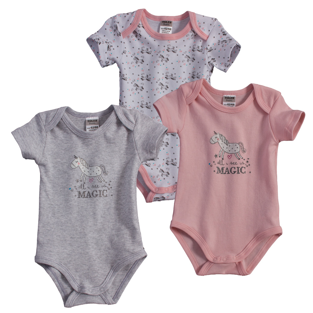 Dojčenské body 3 kusy JACKY  JEDNOROŽEC ružové