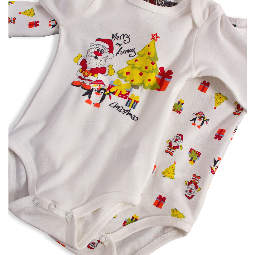 Body s dlhým rukávom, s vianočnou potlačou. Zapínanie na patentky v rozkroku. Príjemný bavlnený úplet.