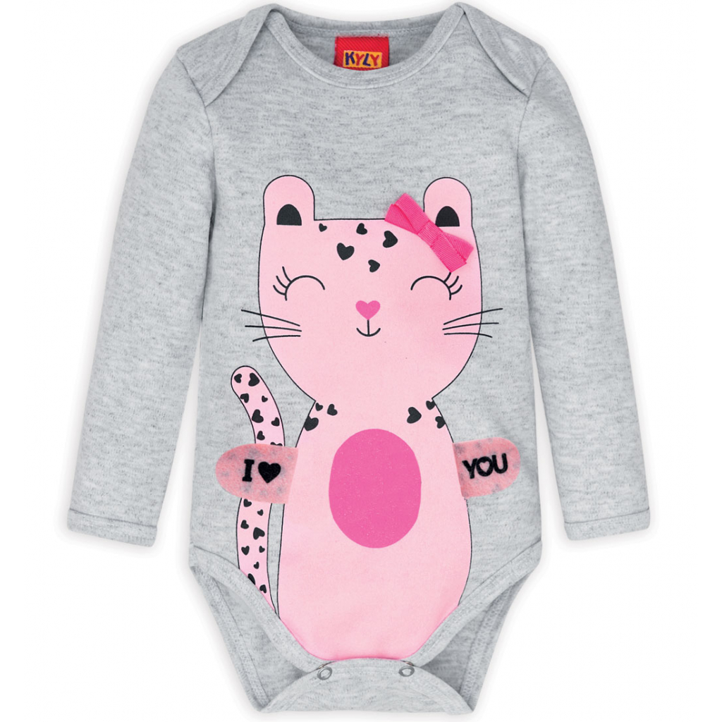 Dojčenské body pre dievčatá brazílskej módnej značky KYLY. Roztomilá potlač. Mäkký bavlnený úplet. Zapínanie na patentky medzi nožičkami.