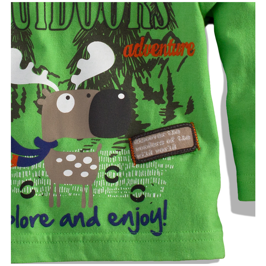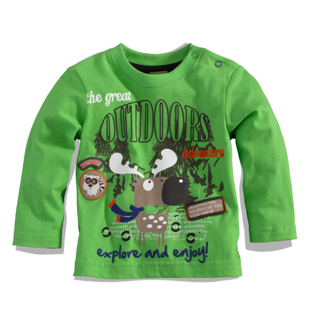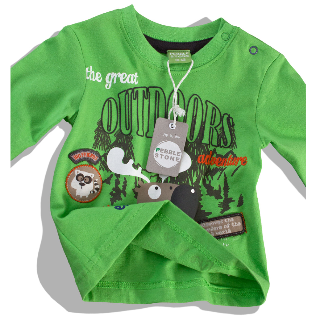 Dojčenské tričko PEBBLESTONE s dlhým rukávom. S potlačou a nášivkami. Na ramene zapínanie na patentky.