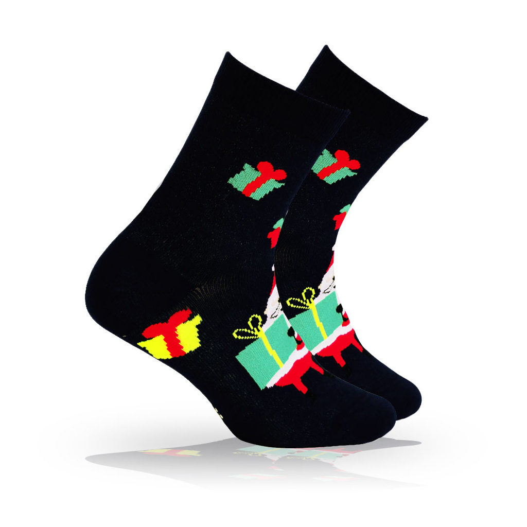 Ponožky s vypleteným vzorom, s farebným vianočným motívom. Príjemný materiál, dobre držia na nohe. Certifikát zdravotnej nezávadnosti OEKO-TEX.Dodatočné parametre