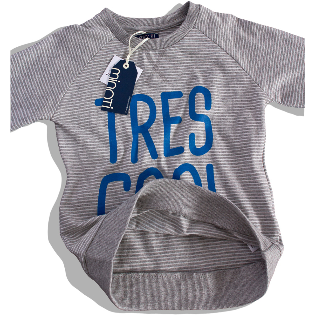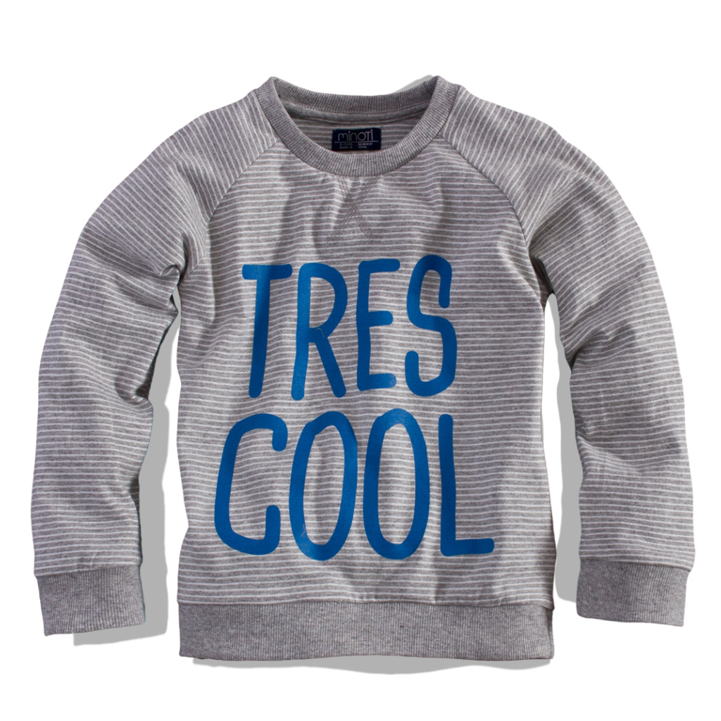 Tenšia chlapčenská mikina. Potlač na prednom diele, ozdobné prešívanie pri krku. Jemný, obojstranne hladký, kvalitný, bavlnený úplet.